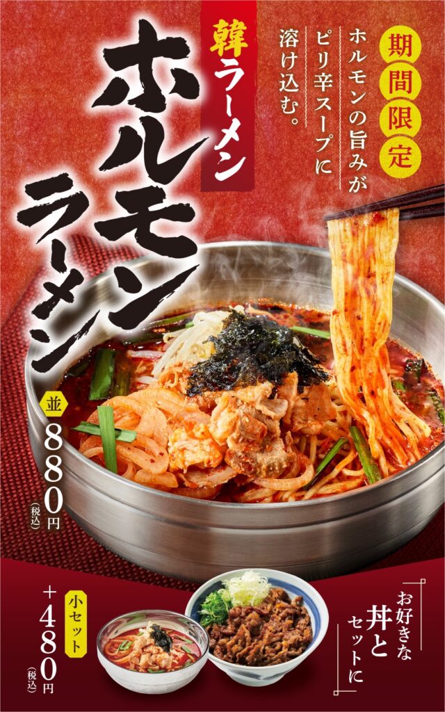 寒い季節にぴったりな、韓丼ならではの新商品「ホルモンラーメン」が登場。