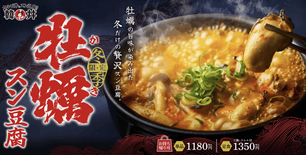 ぷりっぷり牡蠣が主役。毎年大人気の冬のごちそう『牡蠣スン豆腐』が韓丼に今年も登場!