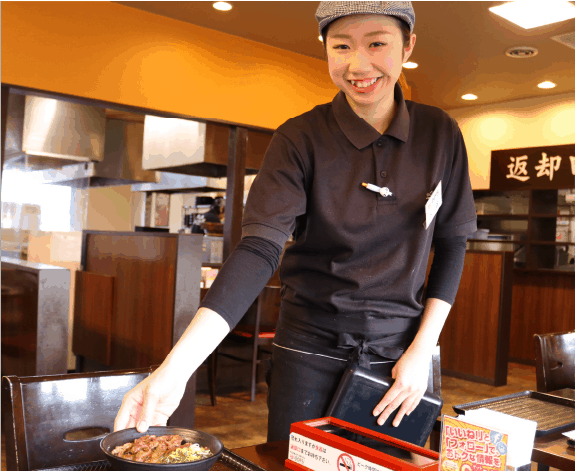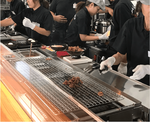 簡略化したオペレーションにもこだわり、カルビ丼は独自開発のガス式高温グリラー「ジェットオーブン」を活用し、肉をオーブンのコンベアに乗せると